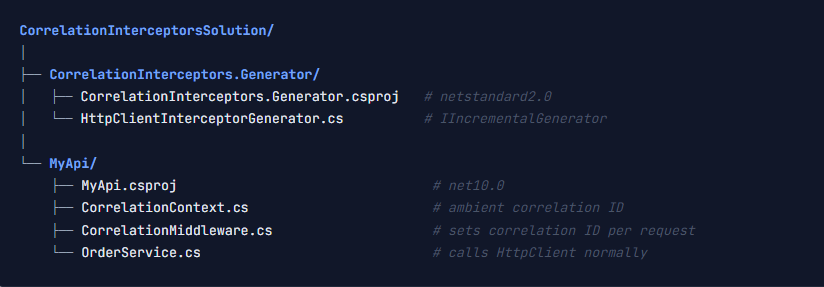 Rather than explaining the mechanism in the abstract, this article builds a concrete solution around a problem every developer working in a distributed environment has faced: propagating correlation IDs across service boundaries through HttpClient. We will go through the usual approaches, show why they all carry some friction, and then implement an interceptor-based Source Generator that solves the problem transparently at compile time.